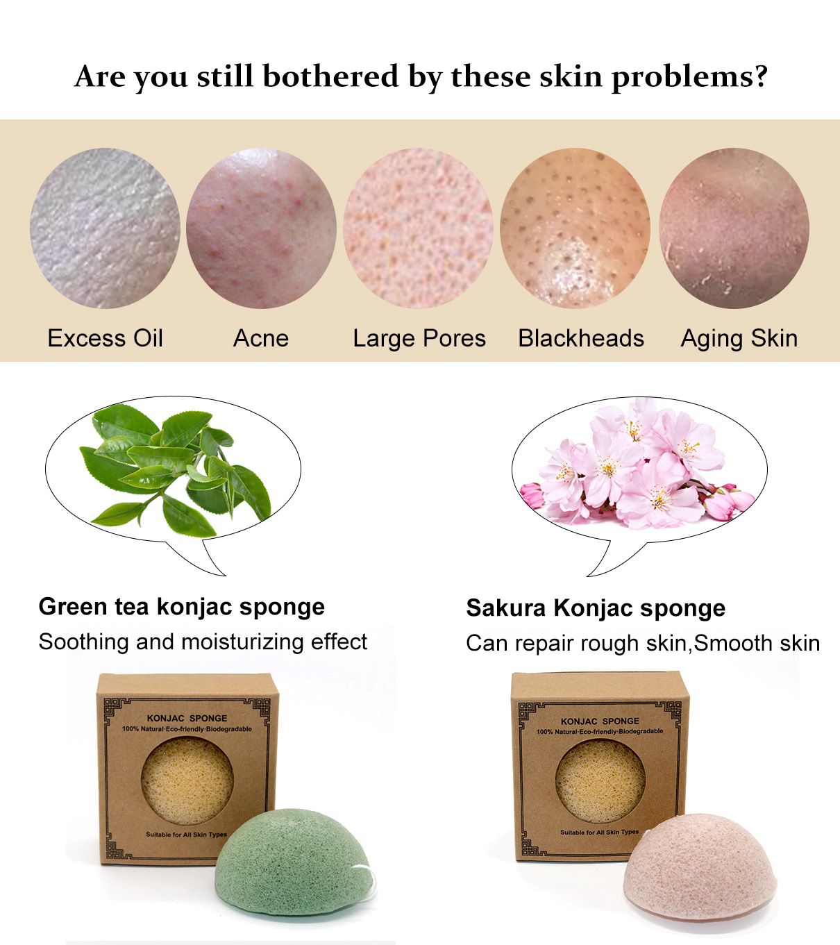Green Tea& Cherry Blossom Konjac Sponge