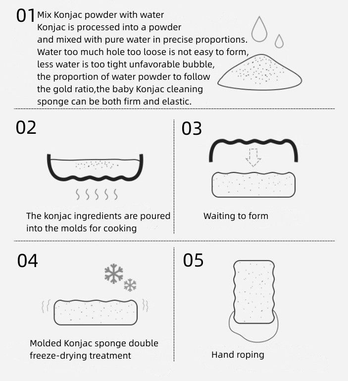 Let’s tell you how Konjac sponge is produced in a simple picture.