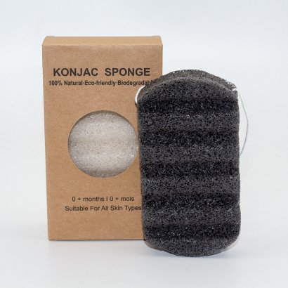 Bamboo Charcoal Black Wavy Face Cleaning Konjac Sponge Puff