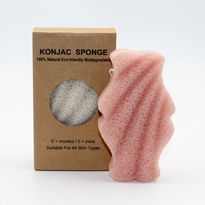French Red Clay Wave Face Cleaning Konjac Sponge Puff