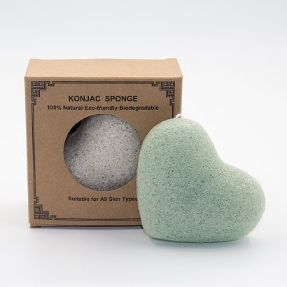 Green Tea Heart Face Cleaning Konjac Sponge Puff