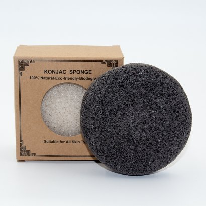 Bamboo Charcoal Black Round Face Cleaning Konjac Sponge Puff