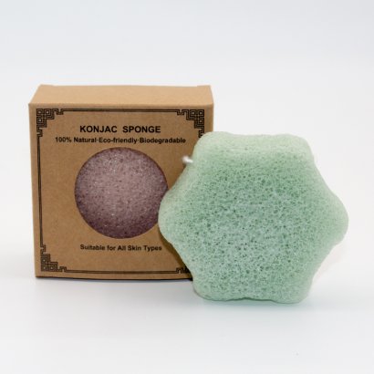 Green Tea Hexagon Face Cleaning Konjac Sponge Puff
